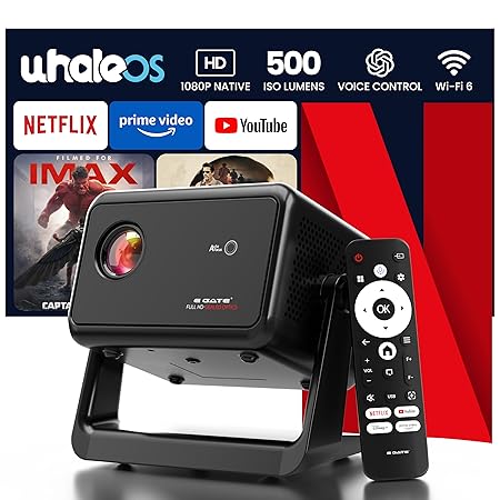 - 【Technology Re-Defined with AI Prowess & Bi-directional BT & Sealed Optics】 : Industry’s Best Amlogic950D4, with Quad Core Processor, Mali-G31 MP2 GPU with 1GB-8GB | Dual Band Wifi6 (2.4+5 GHz) | Bi-Direction Bluetooth 5.0 | FULLY AUTOMATIC – the intutive AI powered auto focus and auto keystone along with dedicated Bluetooth remote button makes you in control always for razor sharp images | Auto Keystone with addition 4P and 6D (30° Horizontal + Vertical) electronic correction for corner to corner crystal clear picture.